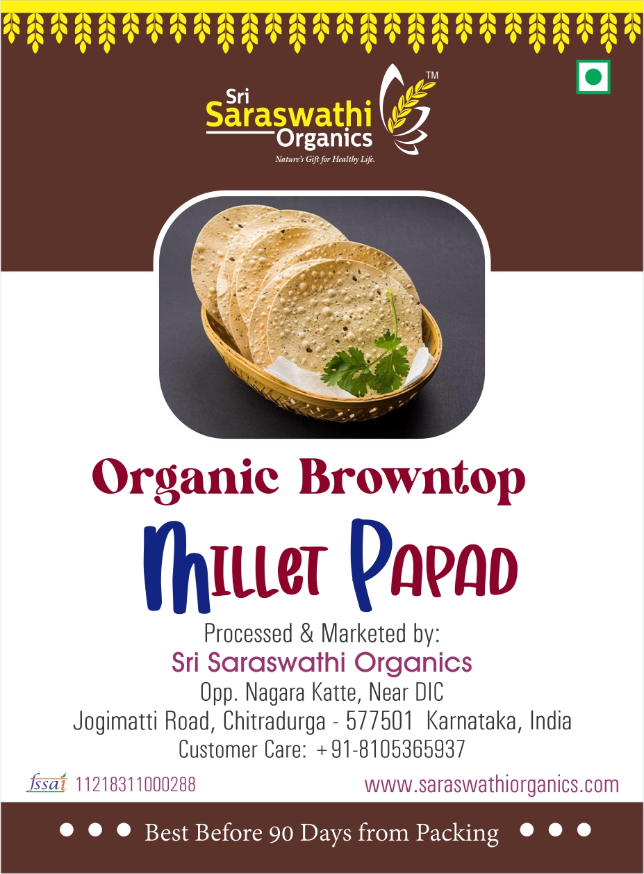 Sri Saraswathi Organics Browntop Millet Masala Papad are made with love and care in a hygienic atmosphere.