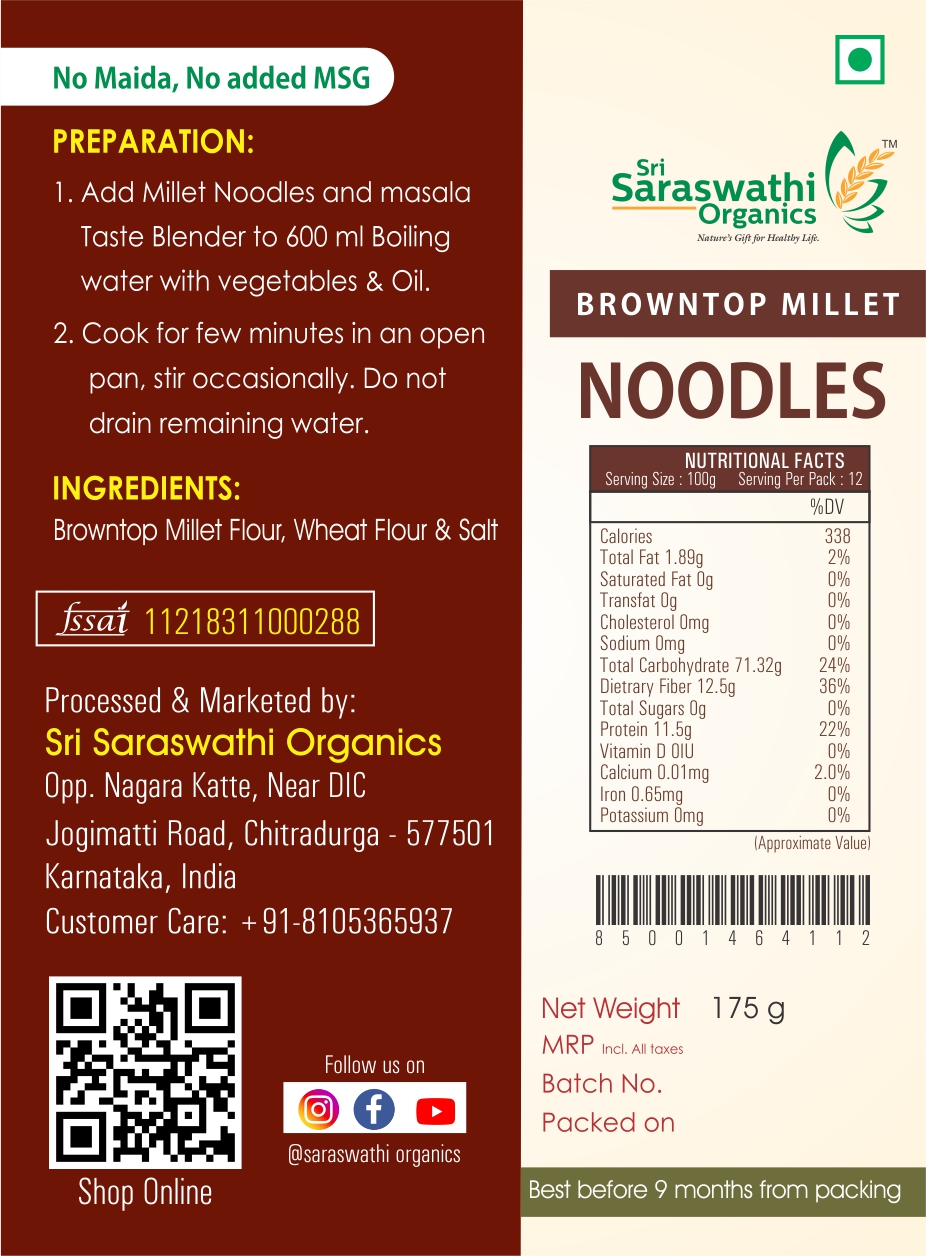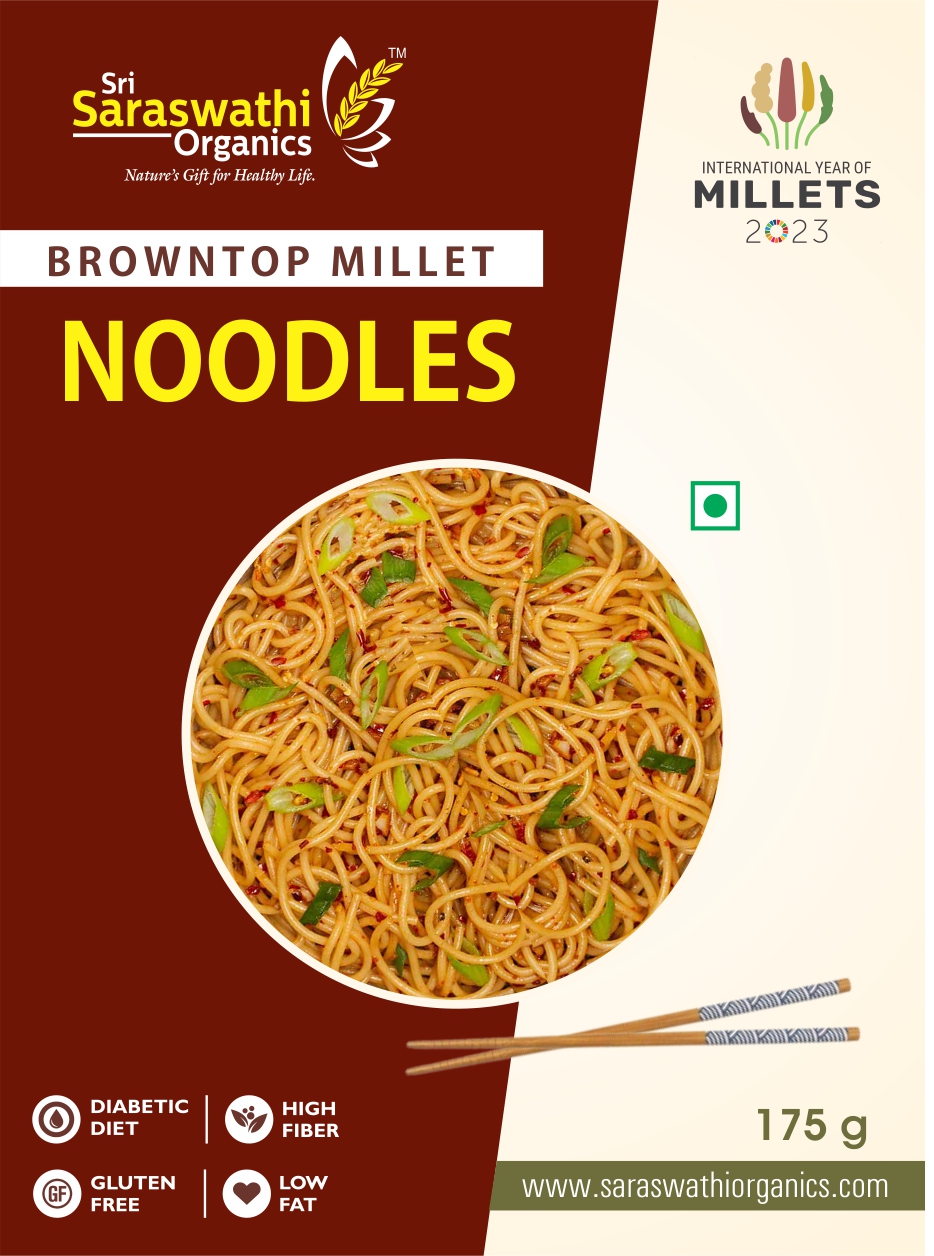 Browntop Millet Noodles from Saraswathi Organics  is the best Healthy alternative for regular Maida Noodles and good for your kids health.