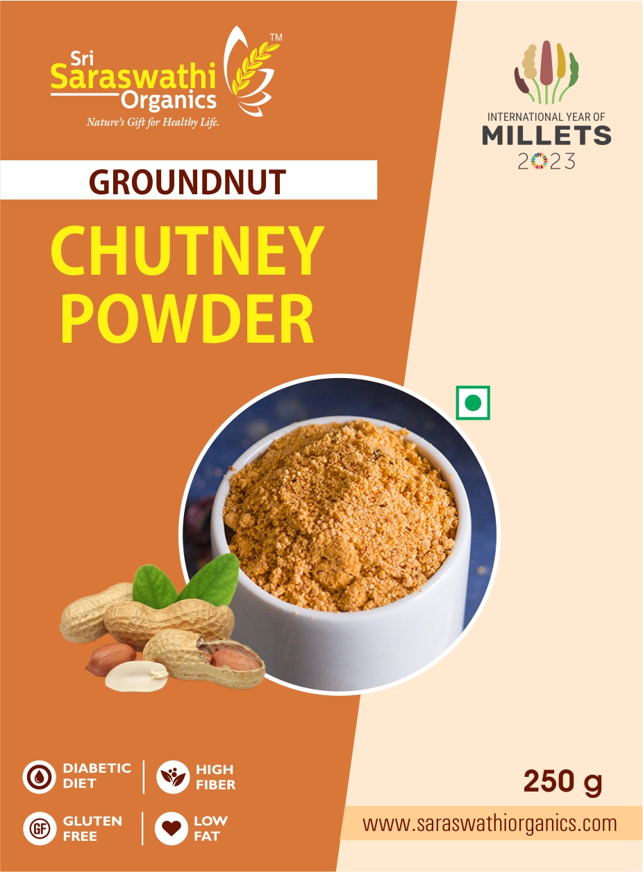 Groundnut Chutney Powder from Saraswathi Organics is a delicious combination with your Rotti, Khakhra and Rice.