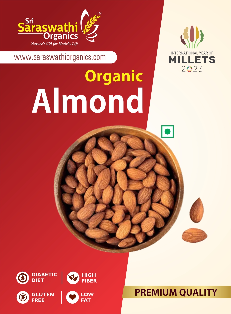 Organic Almonds help prevent cardiovascular diseases, promote gastrointestinal health, aids in weight loss, and helps prevent hair loss.