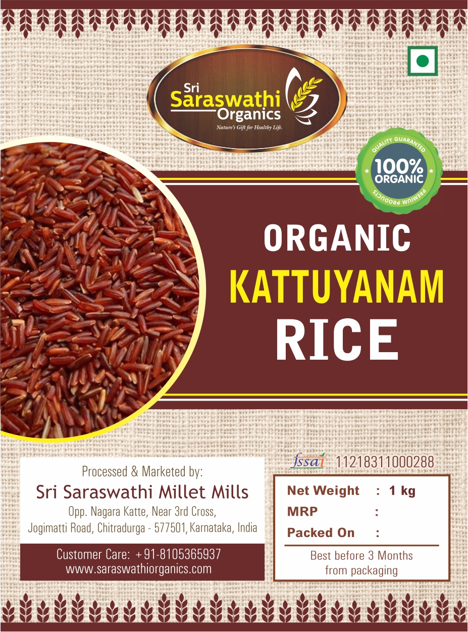 Organic Kattuyanam Rice is red rice variety, Saraswathi Organics brings you the finest quality Organic Kattuyanam rice from fertile organic lands of Tamilnadu
