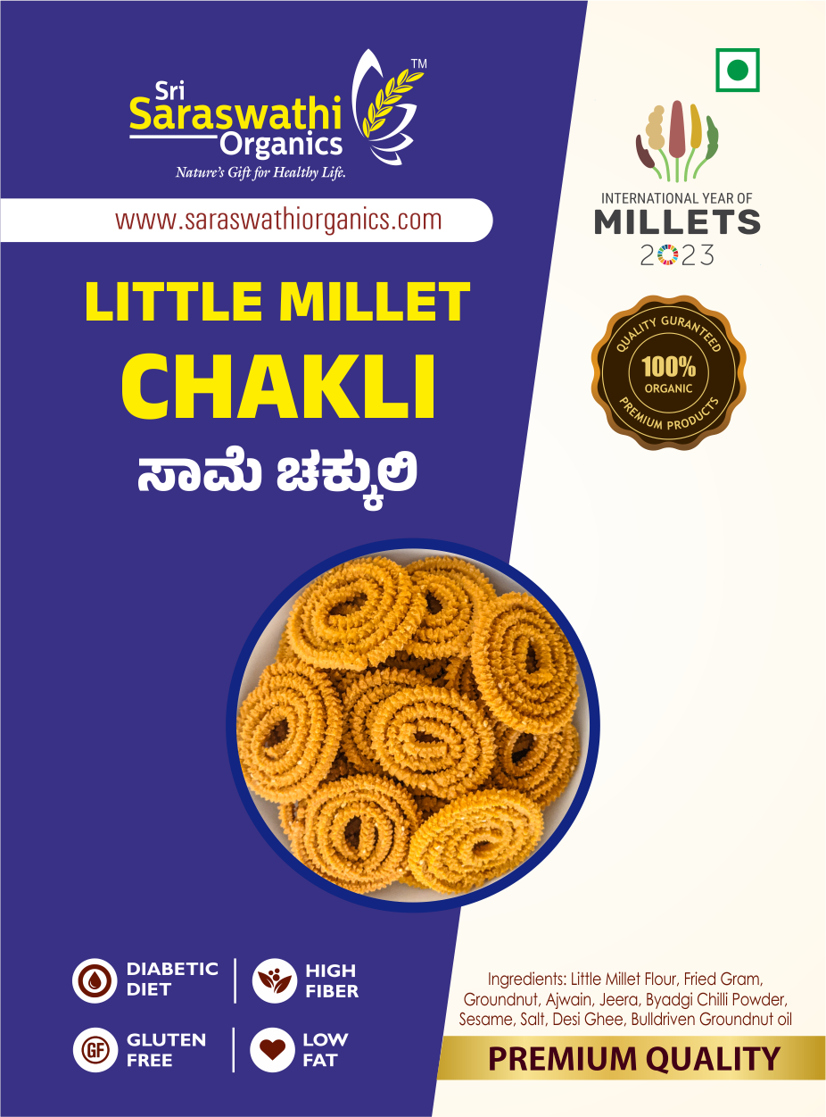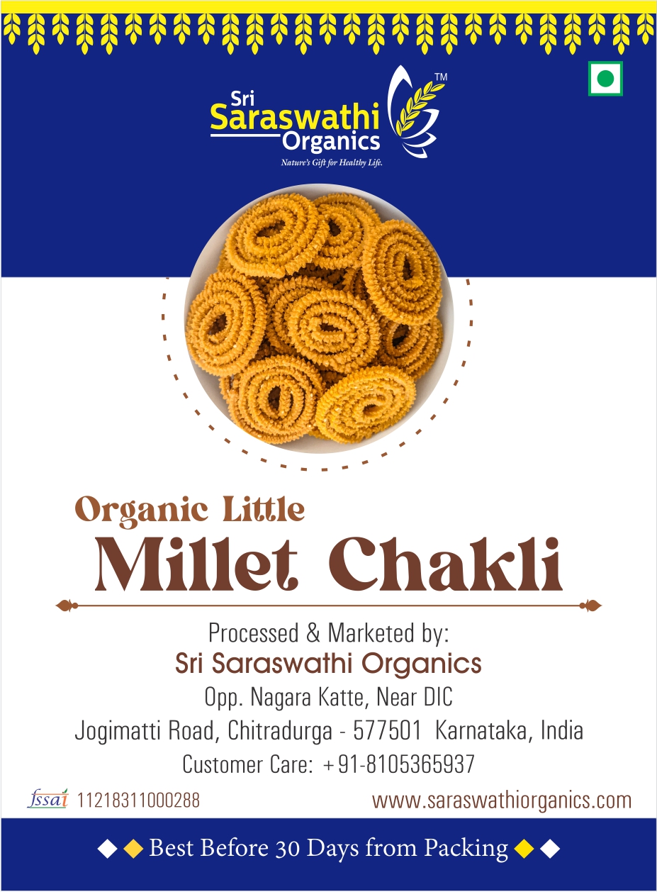 Organic little millet is rich in protein, fiber offering up to 9 grams of fiber per 100 grams of grain. This makes it a great source of plant-based protein for vegetarians and vegans. Additionally, organic little millet chakli is rich in dietary fiber, which is essential for healthy digestion and can help promote a feeling of fullness.