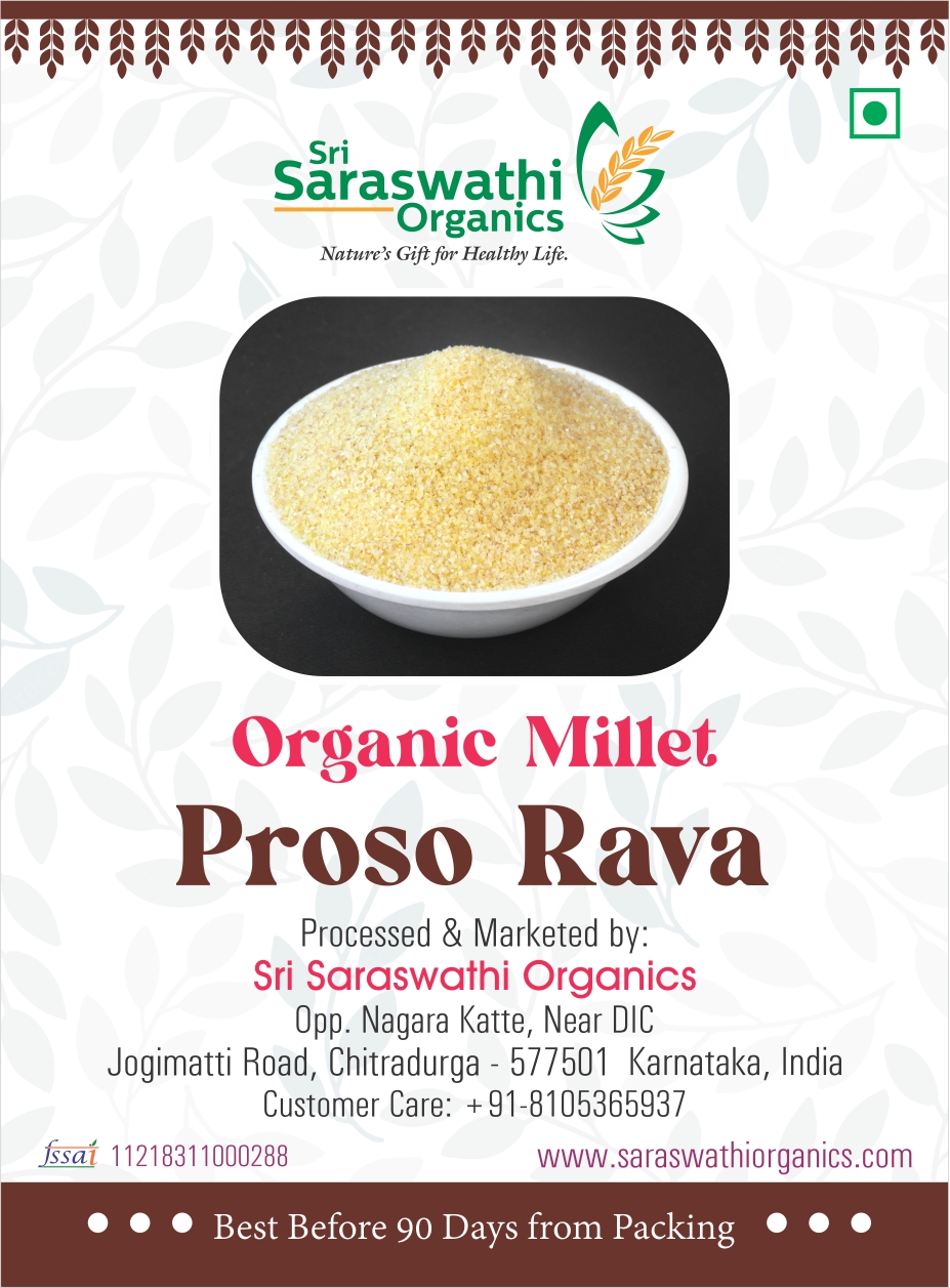 Use “Sri Saraswathi Organics” Organic Proso Millet Rava as a hassle free substitute for your everyday rice and wheat rava and witness the health benefits pouring!Â